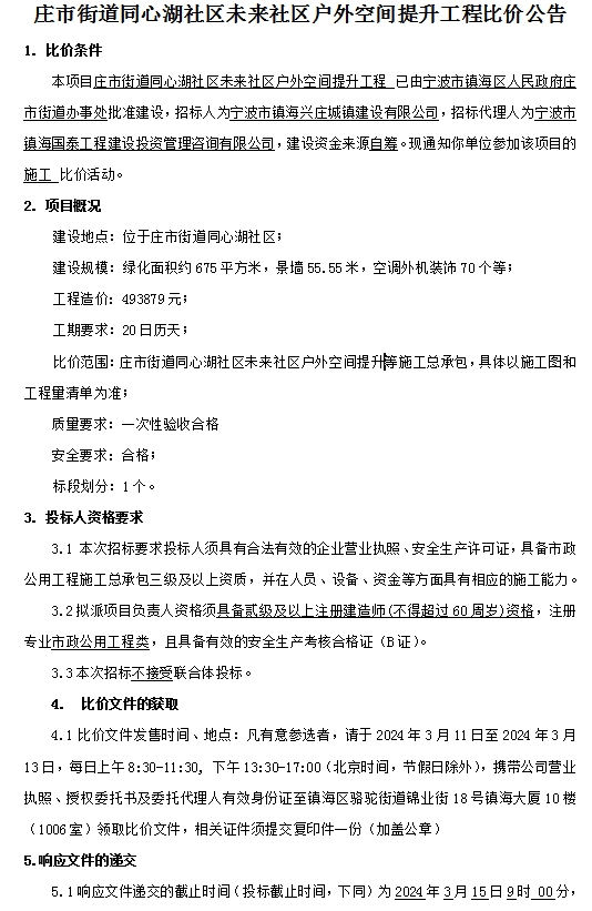 庄市街道同心湖社区未来社区户外空间提升工程比价公告